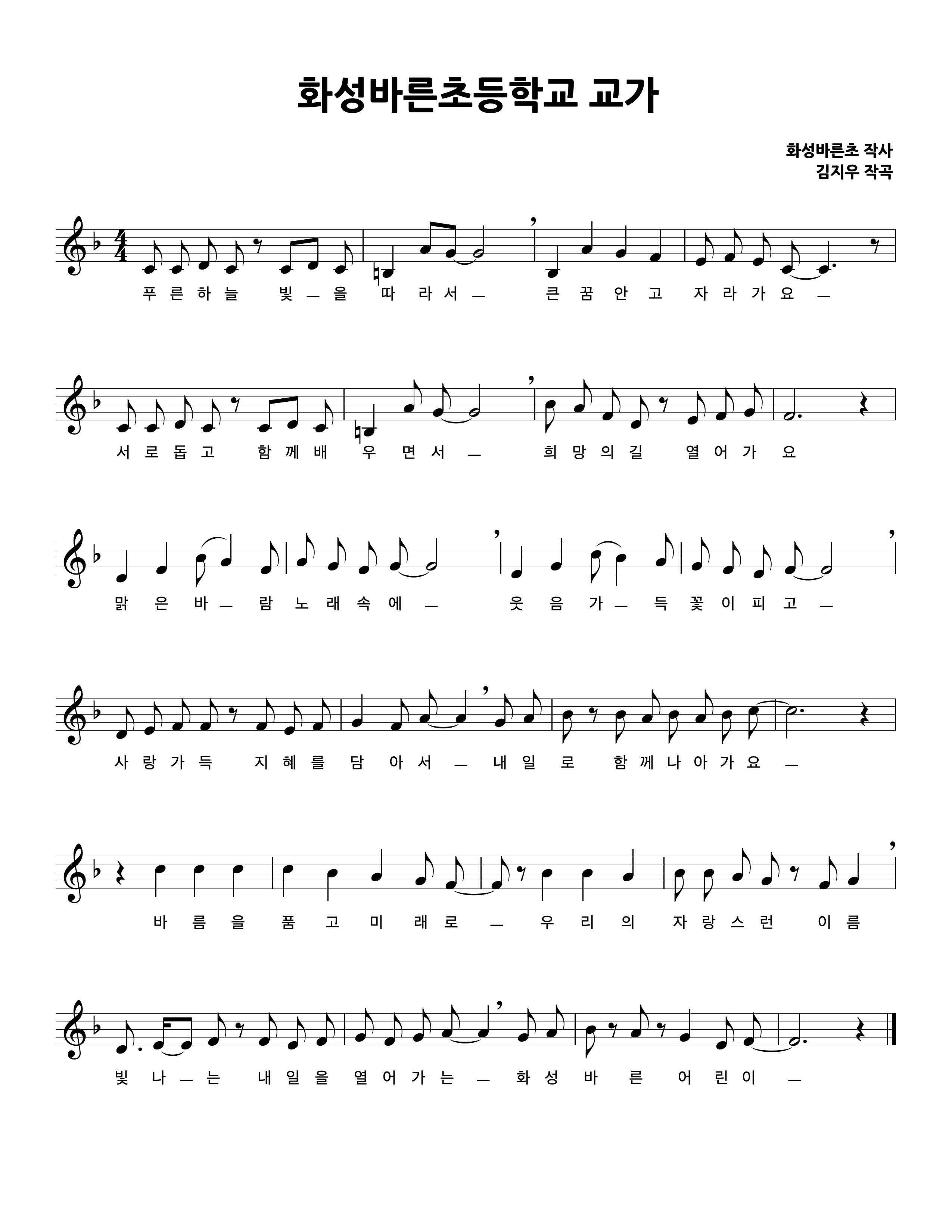 소나무 - 사시사철 푸른 빛을 간직하듯 바른 품성과 굳센 의지를 지닌 미래 인재의 화성바른어린이를 상징